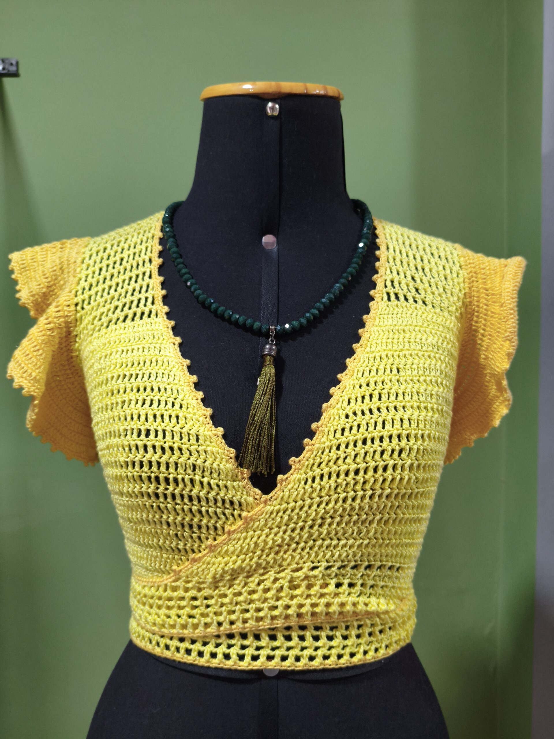 Blusa Abertura: uma combinação de estilos em uma única peça. Esse modelo é versátil porque pode ser usado como peça única ou como terceira peça. Produzido com faixas, ele valoriza as curvas naturais do corpo deixando o look mais envolvente. Ele foi pensado para você ousar e criar a sua própria forma de se vestir.